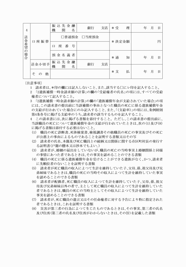 2 補償を受ける権利を有する者が死亡した場合には、その者の遺族は、遅滞なく、その旨を実施機関に届け出なければならない。