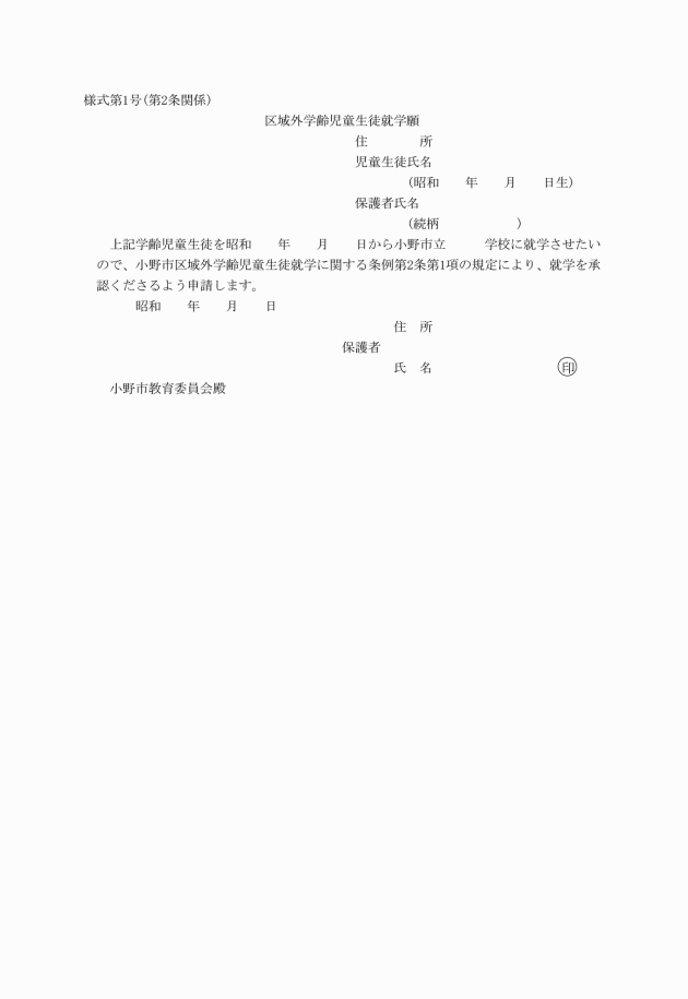 ○小野市区域外学齢児童生徒就学に関する条例施行規則