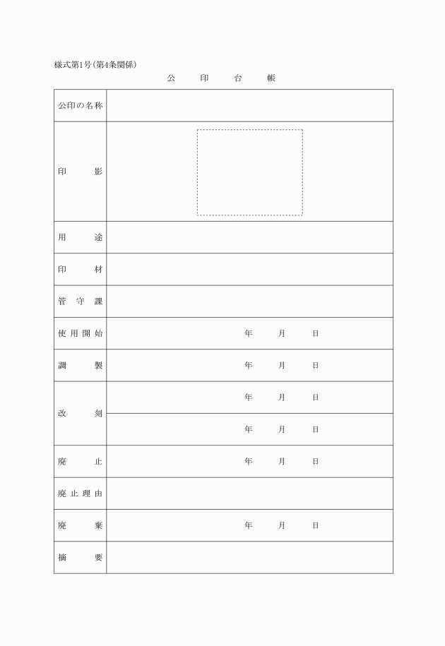 第4条 教育長は、公印台帳(様式第1号)を備え、すべての公印をこれに登録しなければならない。