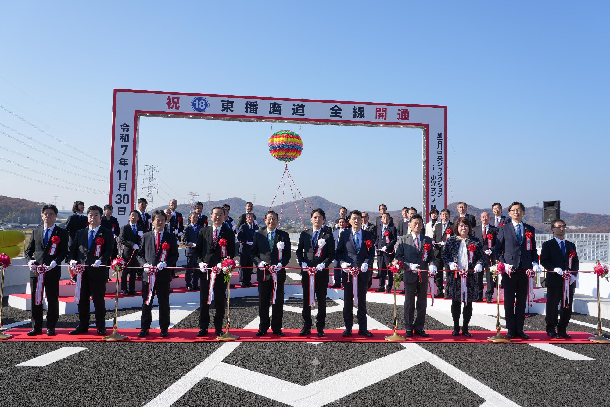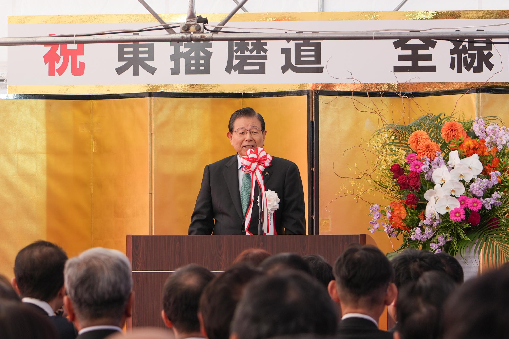 この東播磨道は、地域の医療拠点を結ぶ「命の道」であると共に、災害時の安全安心の確保、臨海部と内陸部の連携強化による雇用の創出に加え、定住促進による少子化対策にも繋がる「東播磨と北播磨の未来を拓く道路」であり、これからの人々への“将来への贈り物”でもあります。県をはじめ、関係機関や地域の皆さまのご協力により東播磨道整備事業が完遂したことに、深く感謝するところです。